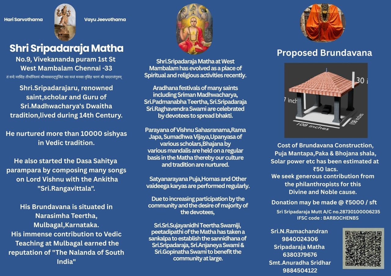 Shri Sripadaraja Matha, West Mambalam is being renovated to facilitate devotees offer seva to