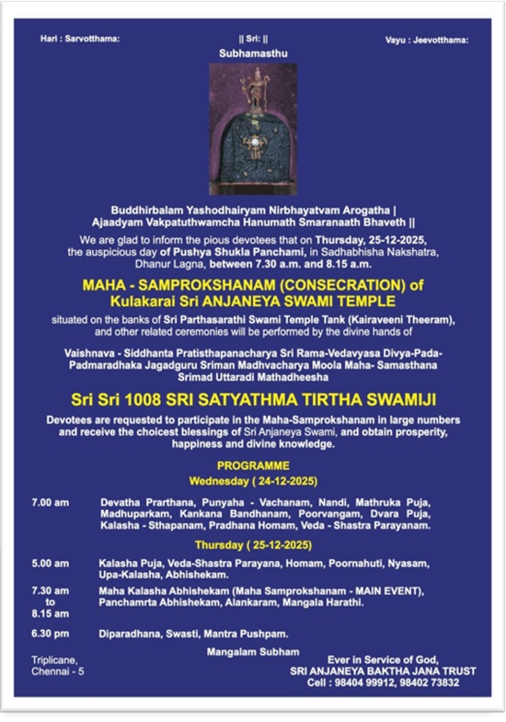 Kulakari Sri Anjaneya Temple, Triplicane, Chennai 600005