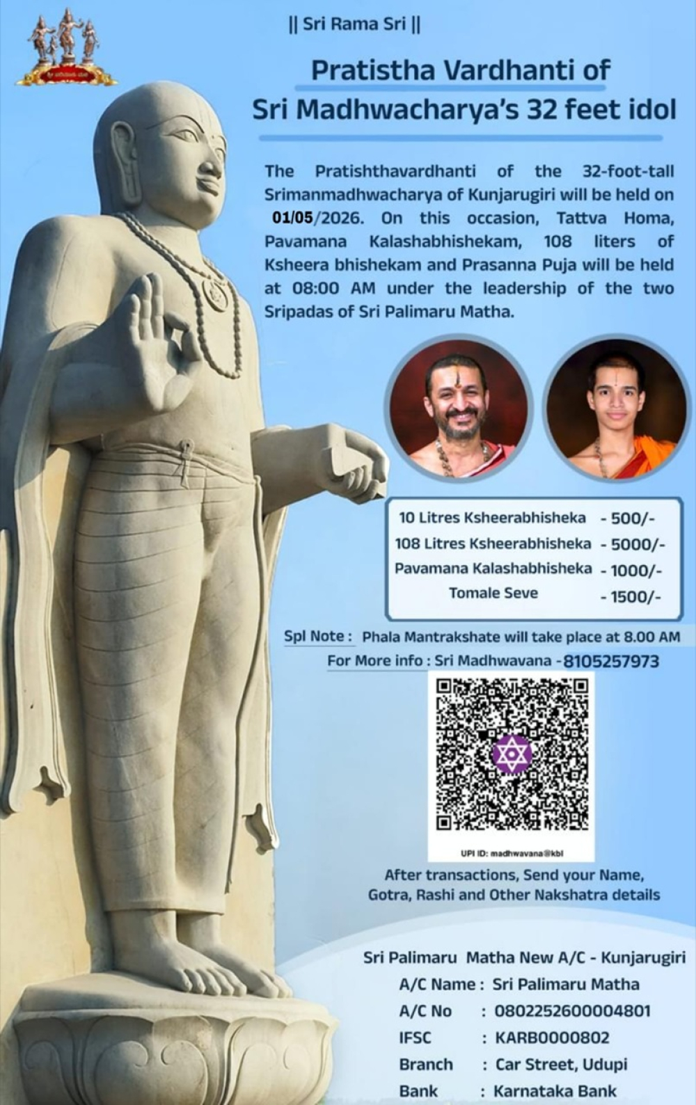 Pratistha Vardhanti of Sri Madhwacharyas 32 Feet Idol