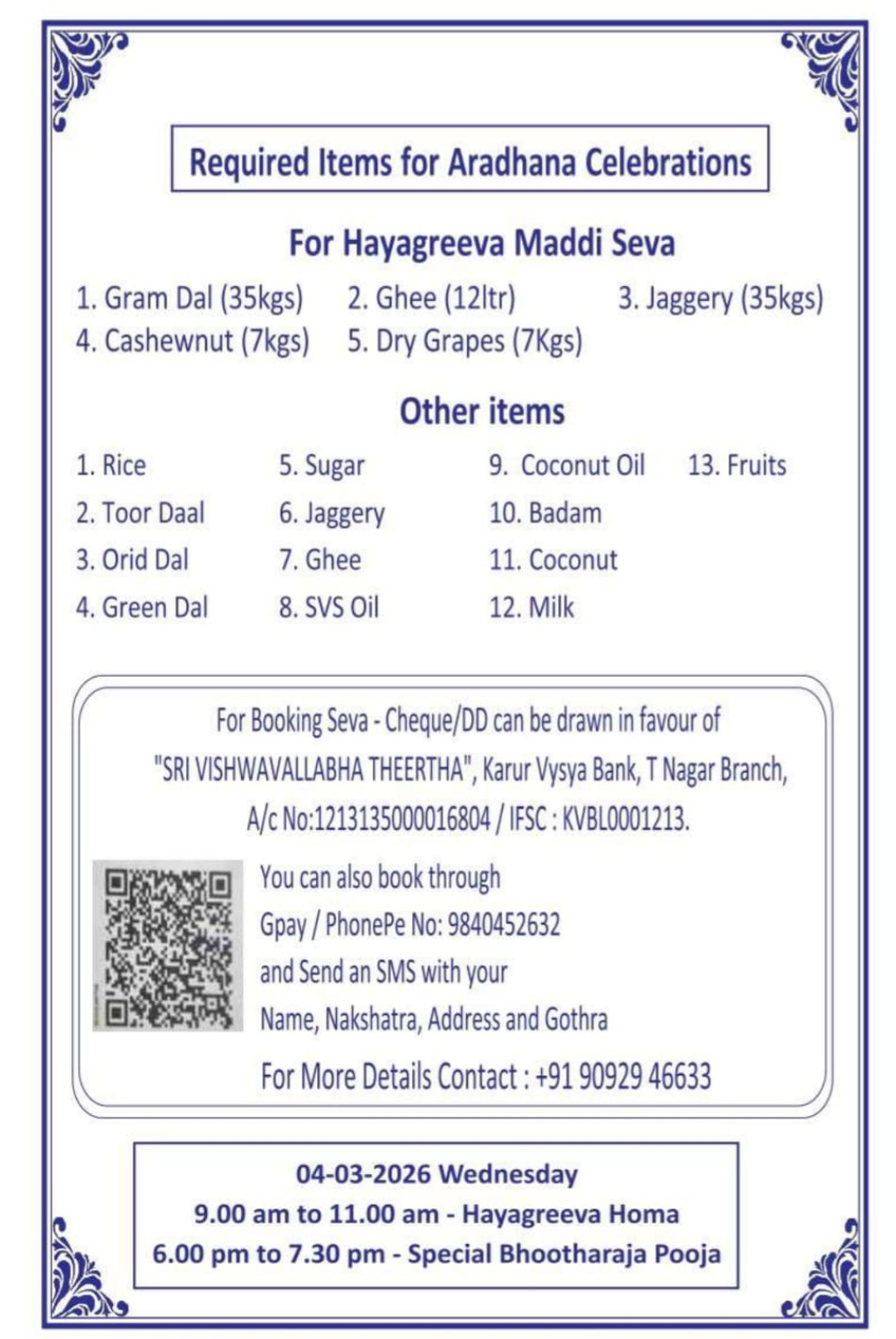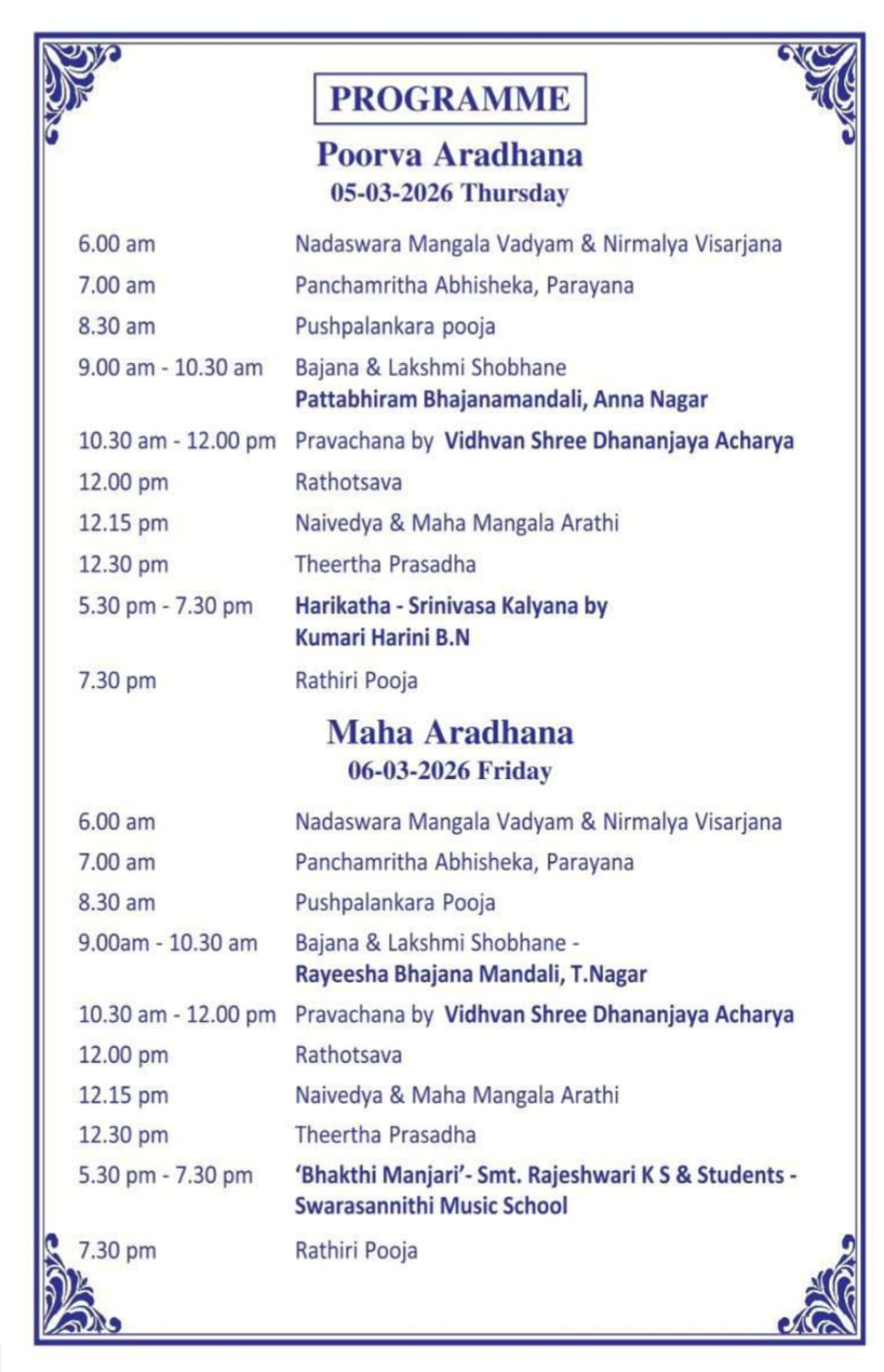 Shri Vadiraja Swamy 425th Aradhana (Sri Sode Vadhiraja Math - T Nagar), From March 5 to March 7, 2026