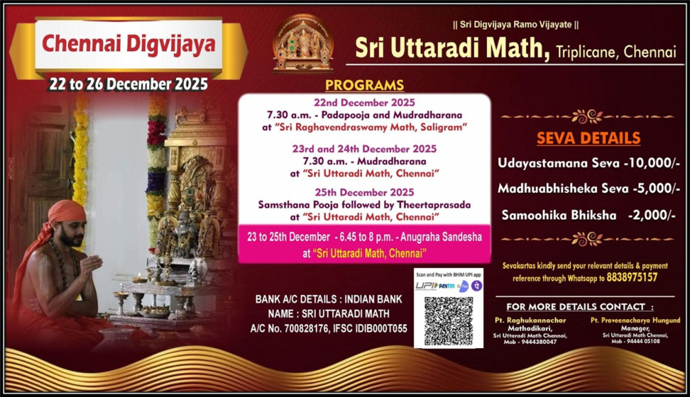 Satyatma Tirtha Swamji Chennai Digvijaya, From Dec 22 to Dec 25, 2025