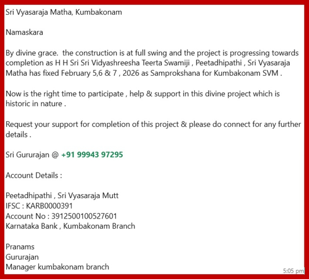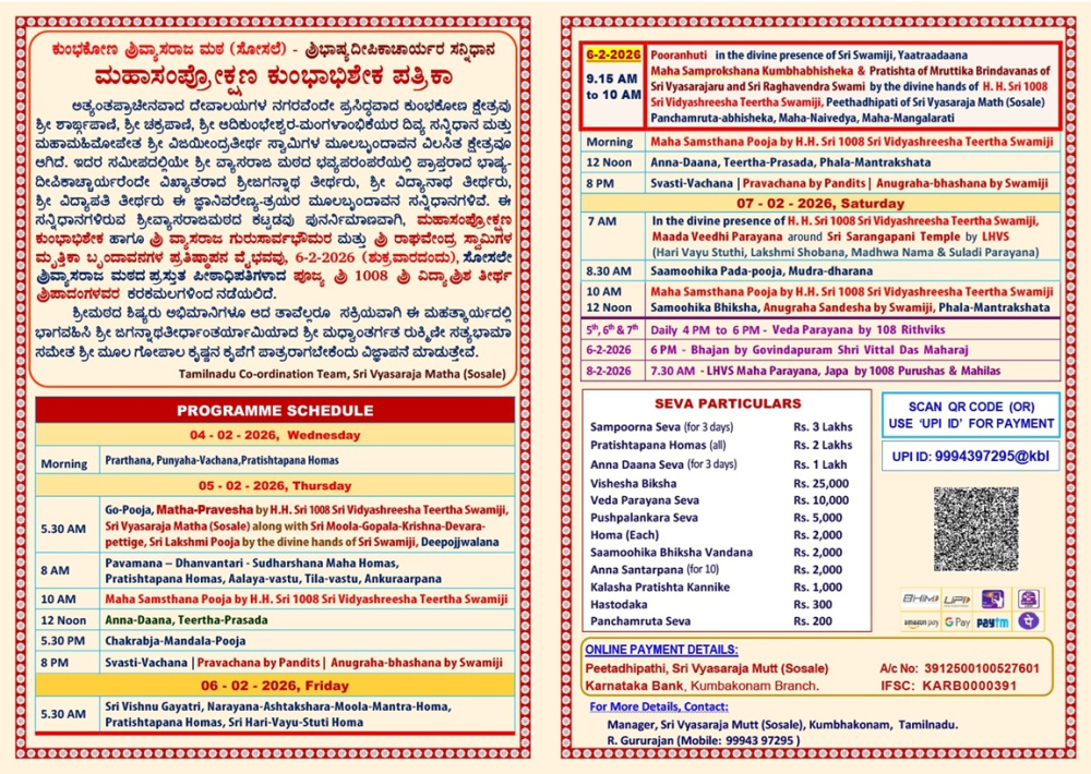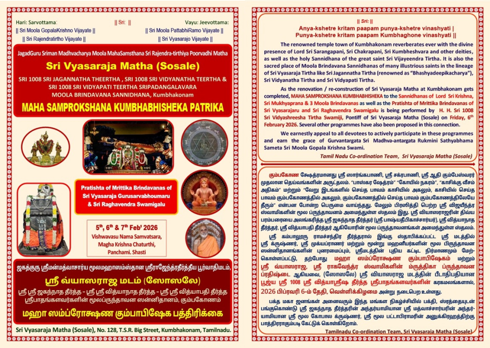 Samprokshana, Sri Vyasaraja Matha, Kumbakonam, Date Feb 5 to Feb 7, 2026
