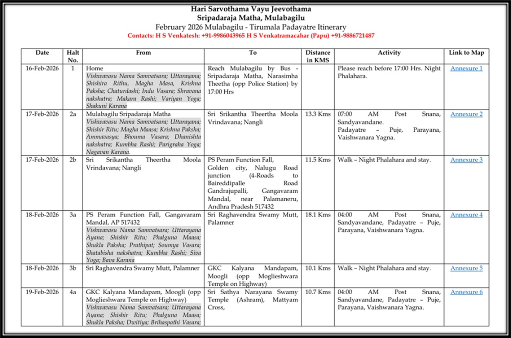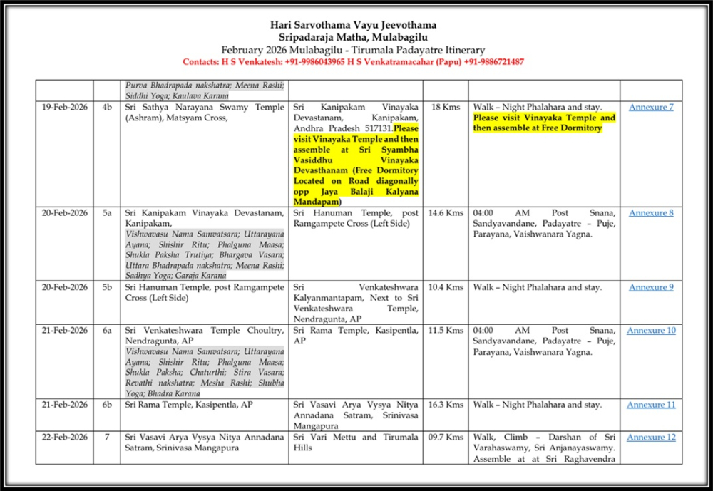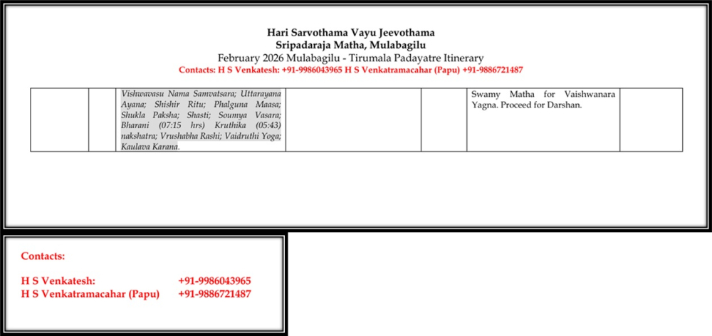 Sripadaraja Matha Tirupathi Padayatra From Feb 16 to Feb22, 2026