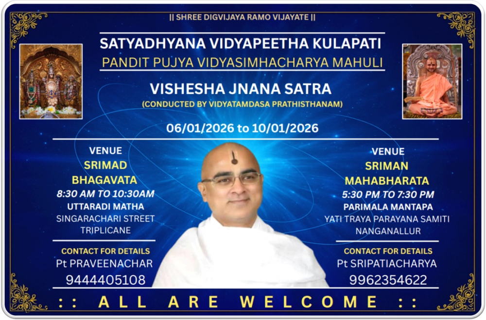Vishesha Jnana Satra by Kulapati Pandit Shri Vidyasimhacharya Mahuli From Jan 6 to Jan 10, 2026