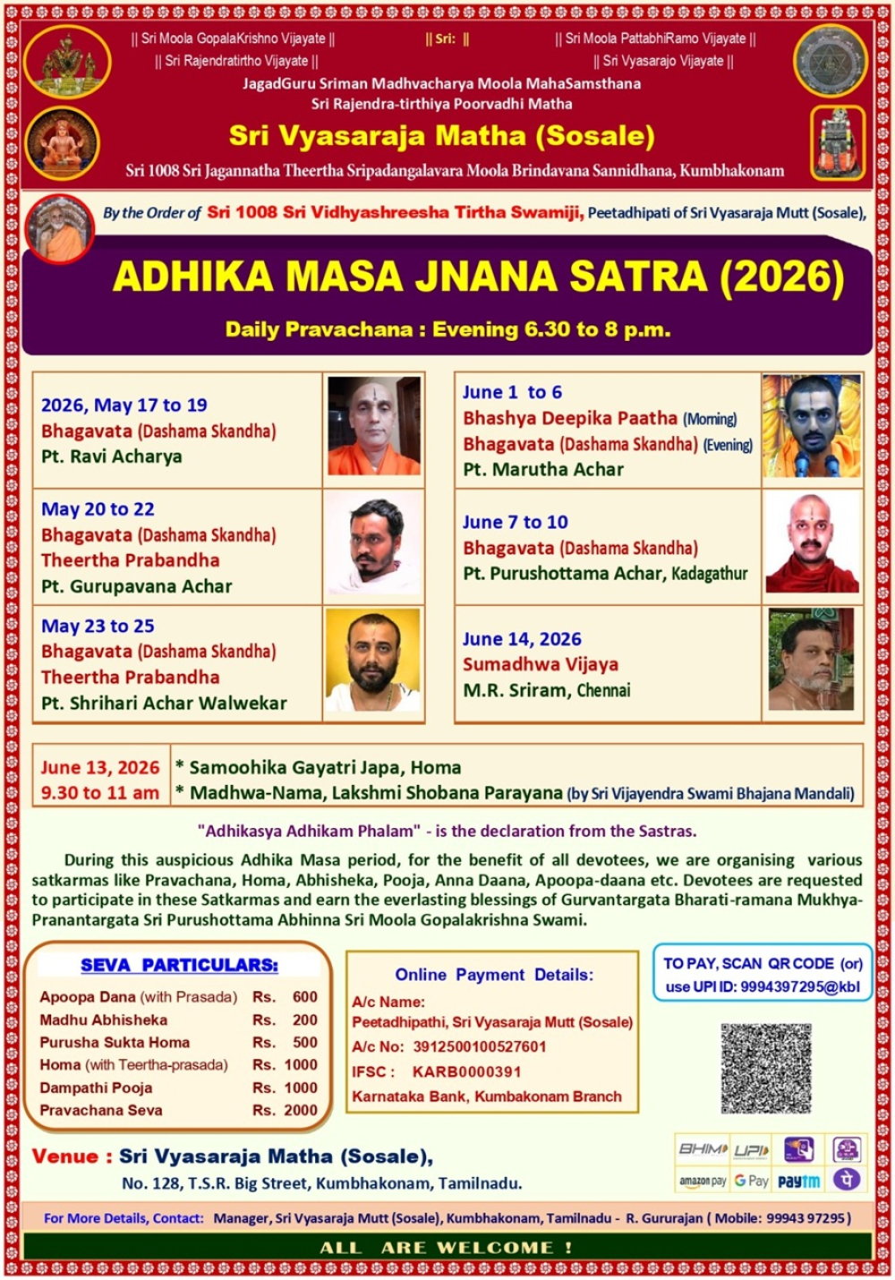 Adhika Maasa Jnana Satra, Date - May 17 to June 14, 2026